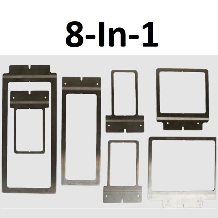 Start embroidering those difficult-to-hoop items with the 8-in-1 device. These hoopless frames make embroidering items like shirt pockets, sleeves, socks, cap backs, and collar tips easier than ever before. All you have to do is grab a frame, place sticky backing on the bottom, hoop your garment, insert the master bracket into the machine, attach the frame to the bracket, and that’s it! You have now embroidered a garment with these simple frames. Just tear the backing off the garment and patch the hole with more adhesive backing to keep using them over and over again. Unlike other embroidery hoops, there’s no need to spend precious time tightening your hoop and straightening out your garment with the 8-in-1 device. It cuts down your hooping time, prevents hoop burns, and lessens the strain your hands might endure with tightening other hoops. Also, using these frames with some sticky backing to embroider difficult items is much more cost-effective than buying a brand-new hoop for every garment type and area. The 8-in-1 device comes with a master bracket, one cap frame, two bag frames, two sleeve frames, and three pocket frames. If you want an embroidery accessory that allows you to easily hoop almost any garment, then the 8-in-1 device is a must-have.