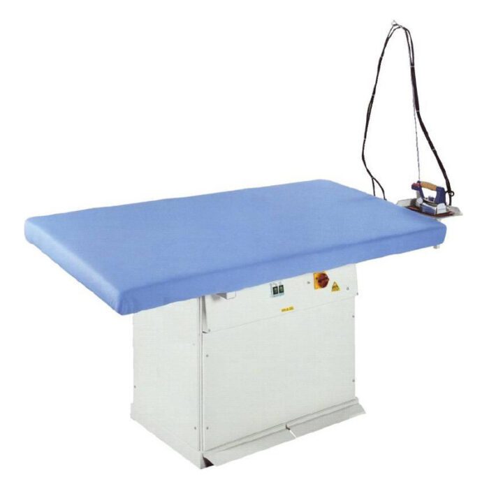 Professional rectangular ironing table 180×90 cm, with connection to the central suction. The table is adapted to the connection of an external steam source. The set includes: silicone iron pad, wire holder.