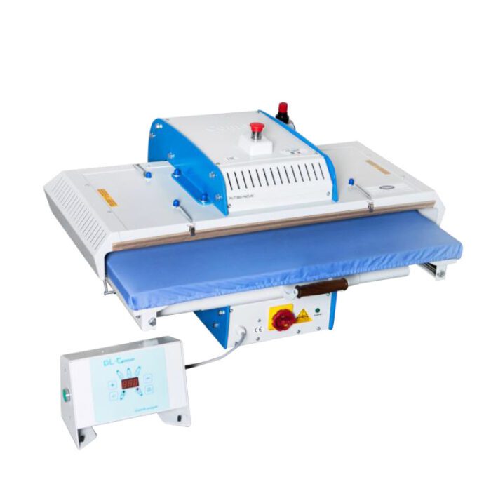 Fusing press Comel PL/T 1250 with a working surface of 1250 x 50 cm. Equipped with manual adjustment of the clamping force and an electric thermostat to regulate the temperature of the board and gluing time. It has a safety device to prevent accidental closing of the disc.