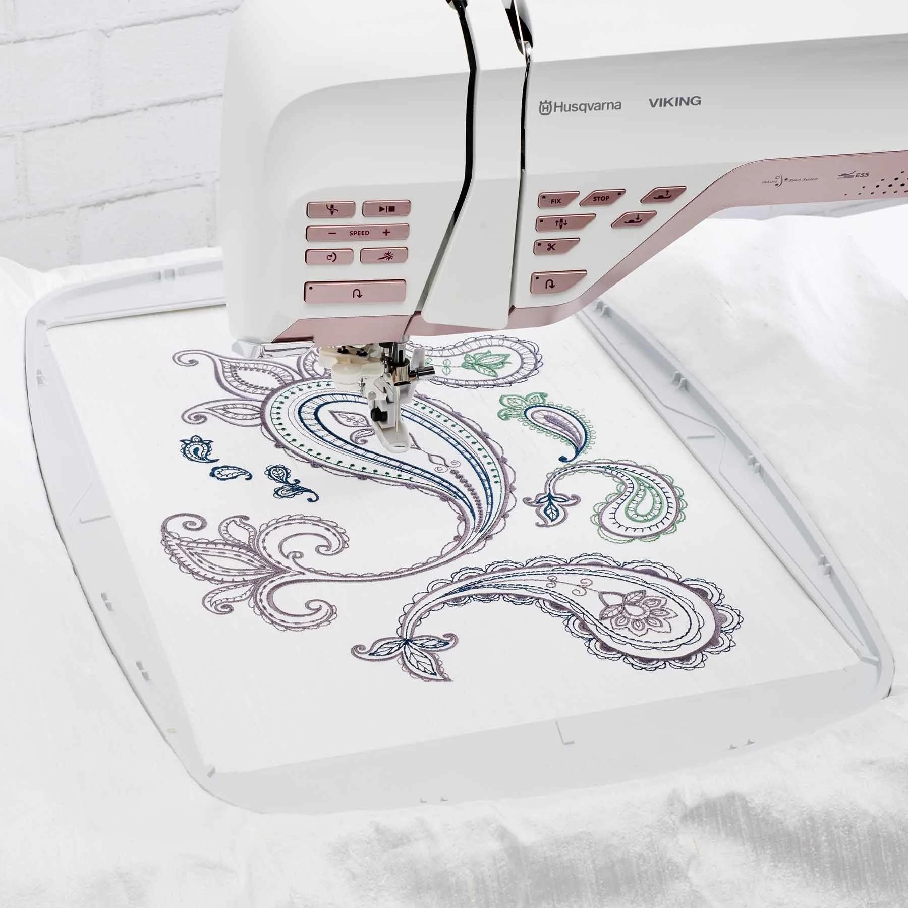 The HUSQVARNA® VIKING® DESIGNER™ Imperial Hoop offers a large embroidery area of 360 x 260 mm, allowing you to create detailed and expansive designs with ease. This hoop significantly expands the creative possibilities of your embroidery machine, making it ideal for fashion, accessories, home décor, and other large-scale projects. Whether you are working on intricate patterns or bold decorative elements, the Imperial Hoop provides the stability and space needed for professional-quality embroidery.
