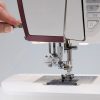 A jam-proof rotary hook, LED lighting with adjustable brightness, Smart Save, USB connectivity, and top/bobbin thread sensors enhance comfort and reliability. The Quick Help function gives you instant explanations directly on the screen, while the double-sided accessory tray keeps tools neatly organized.