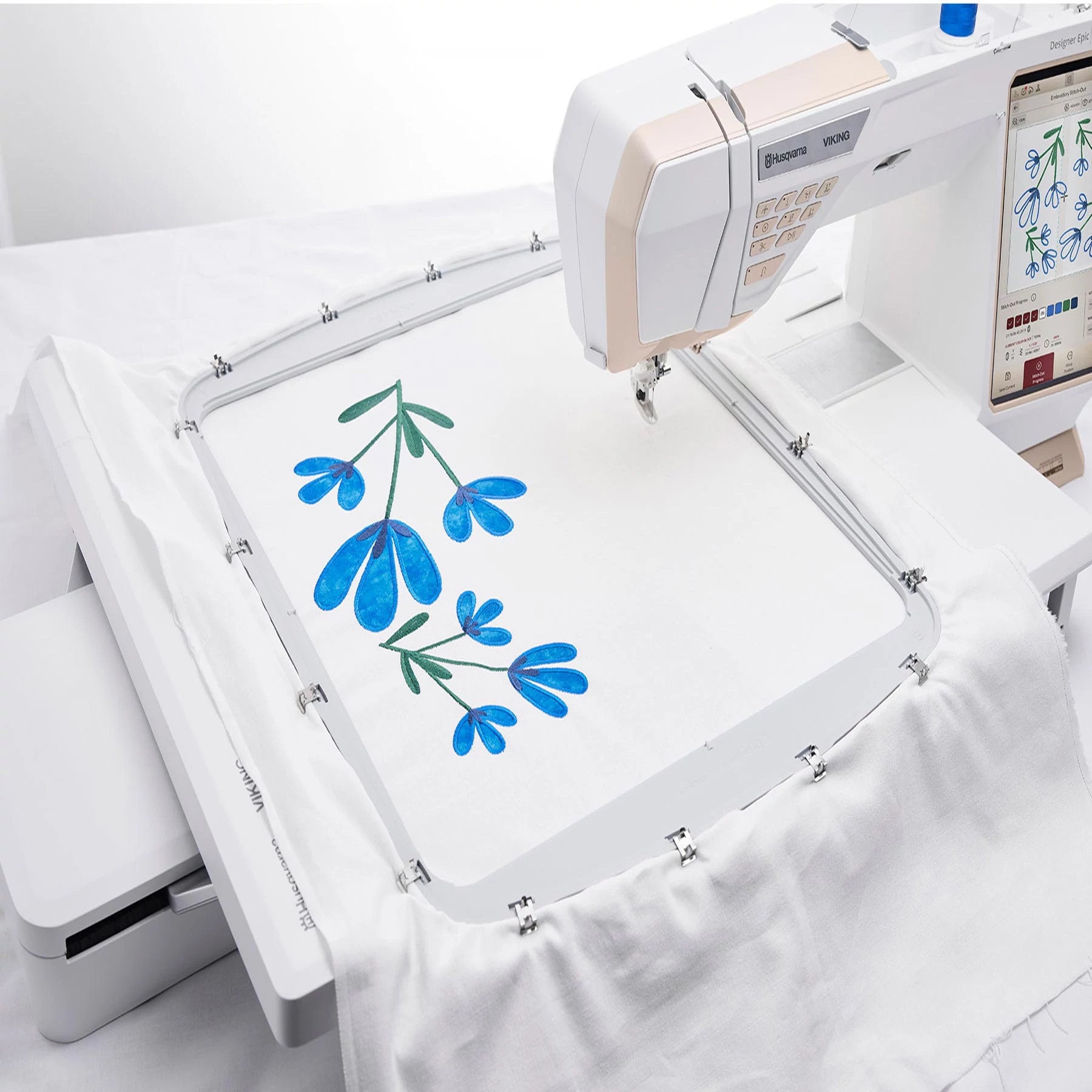 The HUSQVARNA® VIKING® Mega Turnable Hoop is a groundbreaking accessory designed exclusively for the DESIGNER EPIC™ 3 sewing and embroidery machine. With an impressive embroidery area of 450 x 450 mm (17″ x 17″), this hoop allows you to complete extra-large embroidery designs in a single hooping—ideal for quilts, home décor, and oversized garment embellishments.