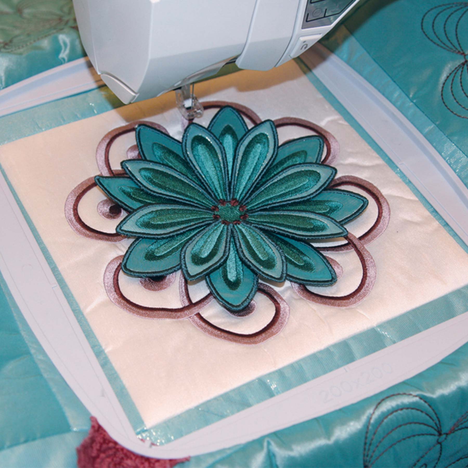The grid and marked centerlines (vertical and horizontal) on the template allow for exact placement and consistency when embroidering. Included with the hoop is a CD containing three free embroidery designs and step-by-step sewing projects. An additional design is available at a discounted price on mySewnet.com, giving you more creative options.