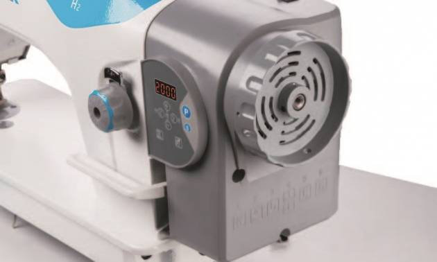 1-needle lockstitch machine intended for sewing thicker materials (e.g. leather, upholstery materials), equipped with an energy-saving motor built directly into the machine head (Direct Drive system). This solution guarantees quiet operation and low electricity consumption. The machine also has a needle positioning function.
