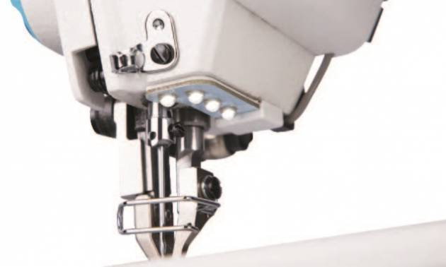 Double transport (bottom feed and top – walking foot) ensures perfect movement of the upper and lower layers of sewn materials. The machine has a readable operating panel built into the head and LED backlight at the needle bar.