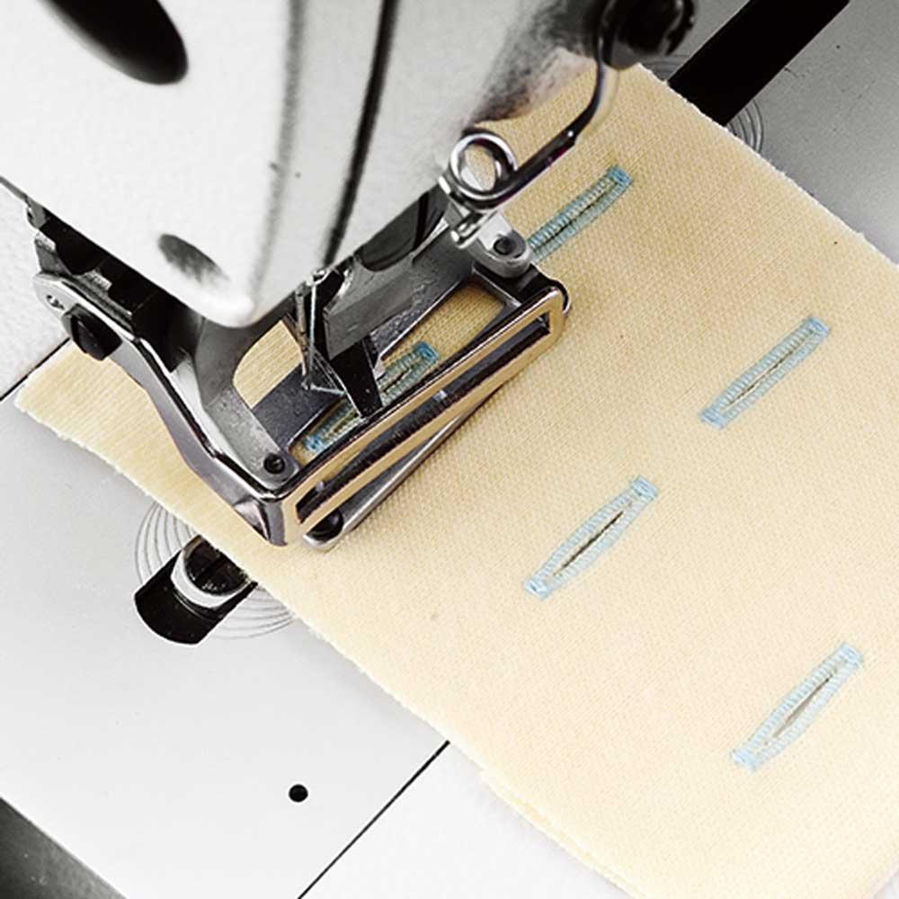The JACK JK-T1790GS-2 is a computerized bartacking machine ideal for reinforcing stress points in garments such as pockets, belts, and seams.