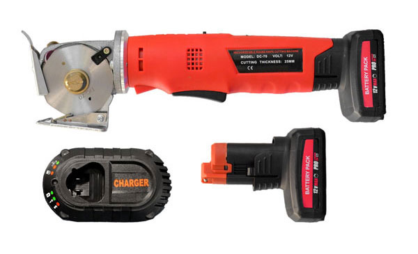 Industrial circular knife designed for cutting various types of materials. The device is suitable for cutting both thin (silk, cotton, synthetic materials, etc.) and thicker materials (denim, thin leather, upholstery materials, etc.). The small size and ergonomic shape ensure comfort of use and high precision of cutting.