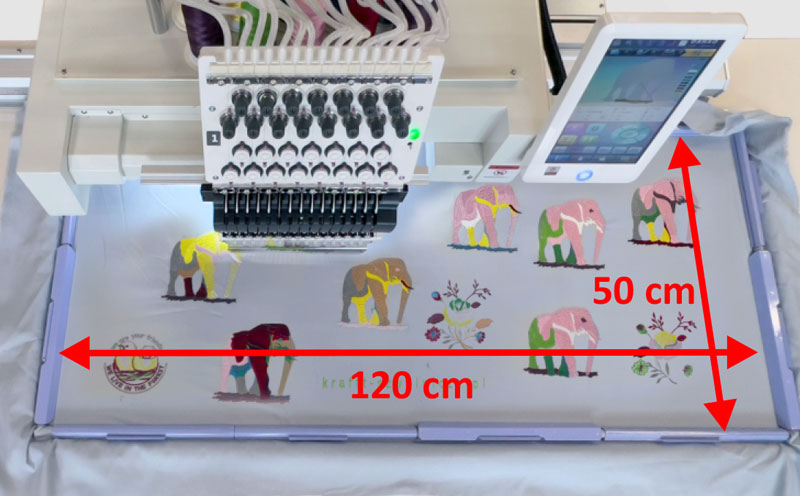 Professional, compact, single-head, 15-color embroidery machine designed for embroidering flat and cylindrical items (hats, etc.), as well as finished products. Maximum embroidery area on flat items is 50 x 120 cm. Automatic start and color change.