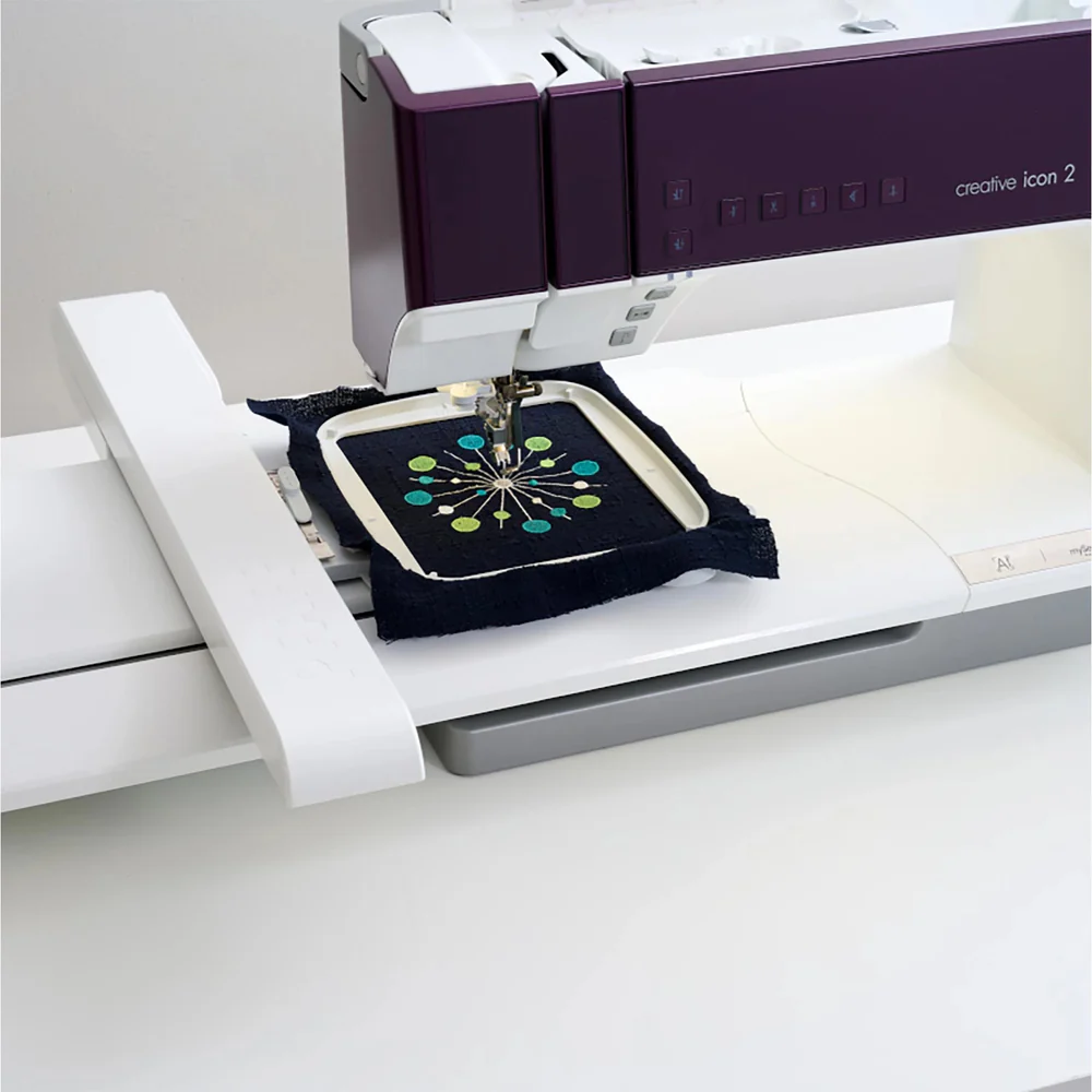 Expand your embroidery capabilities with the PFAFF® creative™ 120 Square Hoop. This hoop provides a generous 120 × 120 mm embroidery area, allowing you to create detailed and professional designs with ease. Ideal for medium-sized projects, it ensures stable fabric hold and excellent stitch quality.