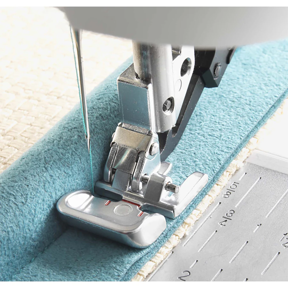 Snaps to either side of the needle for versatility in piping and topstitching