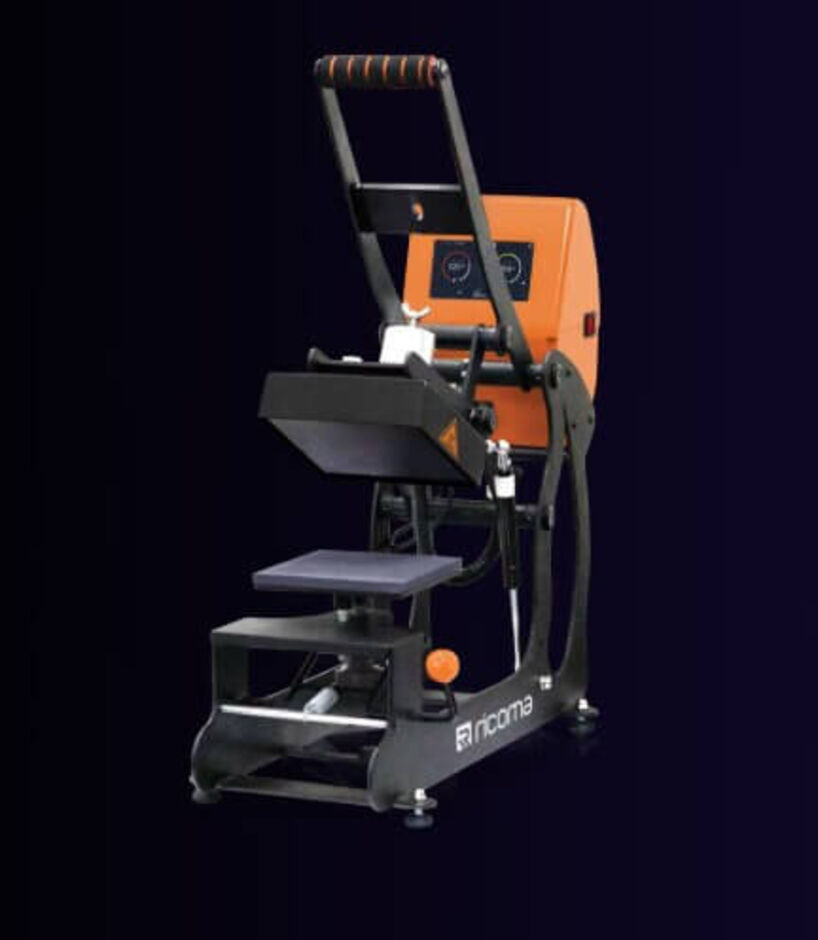 The Ricoma auto open heat press lets you apply upper chest logos, branded tags & labels in seconds.
