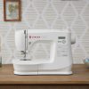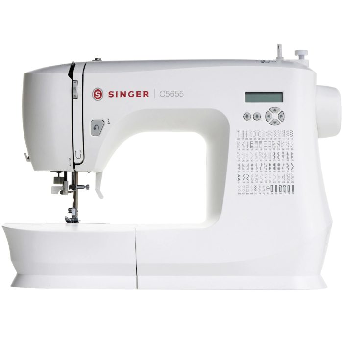 This machine includes 6 one-step buttonhole styles for consistent results and a removable cover revealing a free arm, ideal for sewing sleeves and hems. A large extension table provides extra workspace for bigger projects. With 8 included presser feet and a front-loading bobbin system, the C5655 is versatile and user-friendly, suitable for both beginners and experienced sewers.