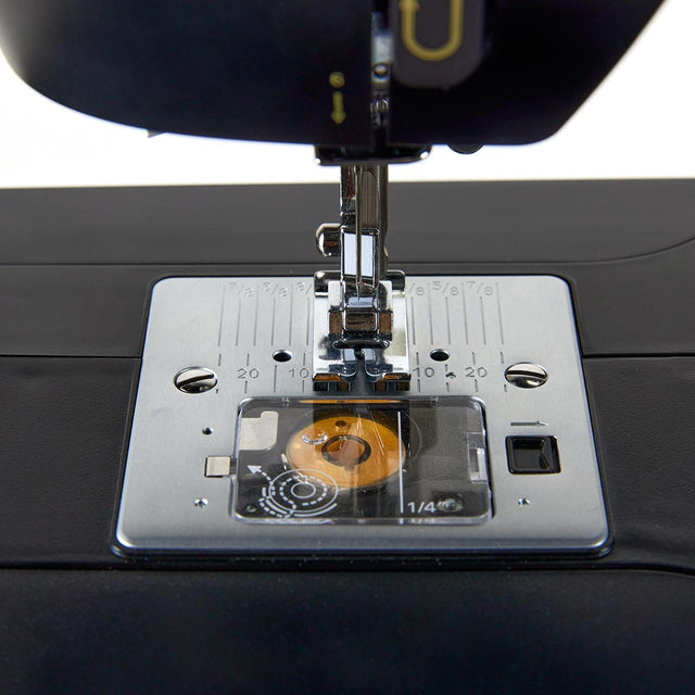 This versatile machine offers 23 built-in stitches, including utility, stretch, and decorative options, and features a one-step buttonhole function that perfectly sizes buttonholes for your buttons in just one step. The large sewing space to the right of the needle (over 6 inches) makes handling bigger projects easier, while the top drop-in bobbin is jam-resistant and easy to load. The built-in needle threader saves time by making threading effortless.