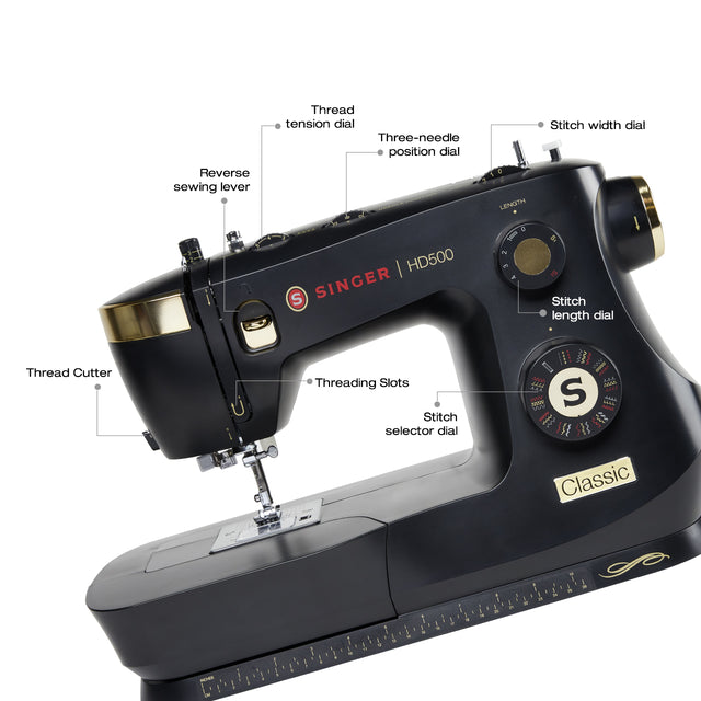 The SINGER® HD500 Classic is perfect for anyone looking for a reliable, powerful sewing machine that handles a wide range of fabrics and projects with ease and style.