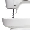 Built with a sturdy full metal frame, the M1605 offers stability while sewing, minimizing vibrations for a smoother experience. Its front-loading bobbin, 4-step buttonhole function, and bright LED light enhance usability. It comes with 3 presser feet and offers up to 750 stitches per minute, so you can finish projects efficiently and with confidence.