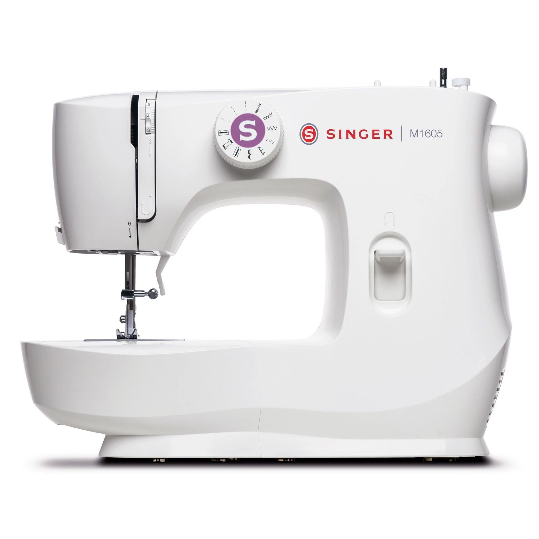 The SINGER® M1605 is a compact and easy-to-use sewing machine, perfect for beginners or anyone looking for a lightweight, reliable model. With 6 essential built-in stitches including straight, zigzag, and decorative options, it covers all your basic sewing needs. The easy-to-use stitch selection dial allows for quick adjustments, helping you move from one project to the next with ease. Whether you’re hemming pants, making home accessories, or crafting, this machine is a helpful companion.
