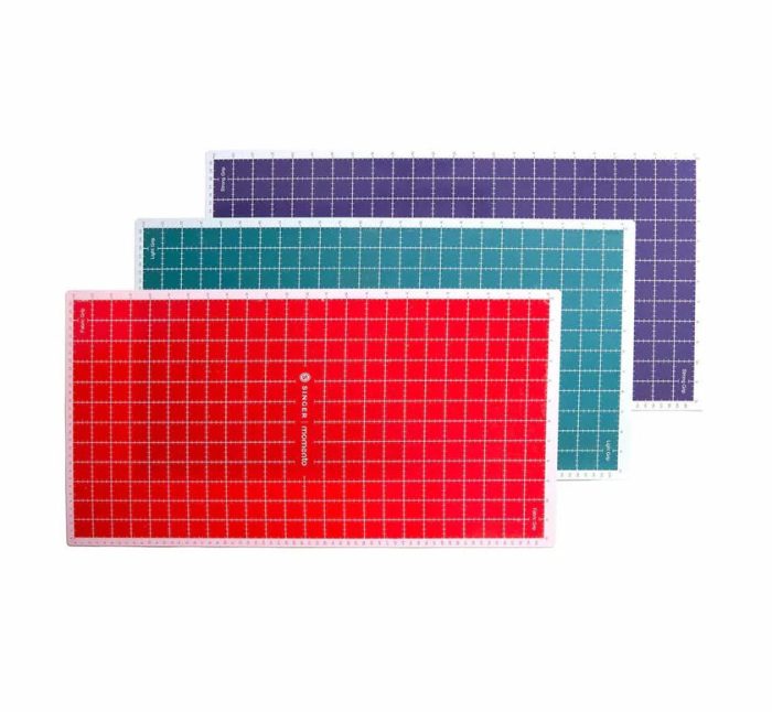 The SINGER® MOMENTO™ 30 x 60 cm Mat Multipack (3 pieces) is a complete set of adhesive mats designed to enhance the performance of your Momento Craft Cutting Machine. These mats securely hold a variety of materials in place during cutting, ensuring clean, precise cuts while allowing materials to be easily removed without deformation. The pack includes one Fabric Grip Mat, one Lightweight Grip Mat, and one Heavy-Duty Grip Mat, providing versatile options for different project types.