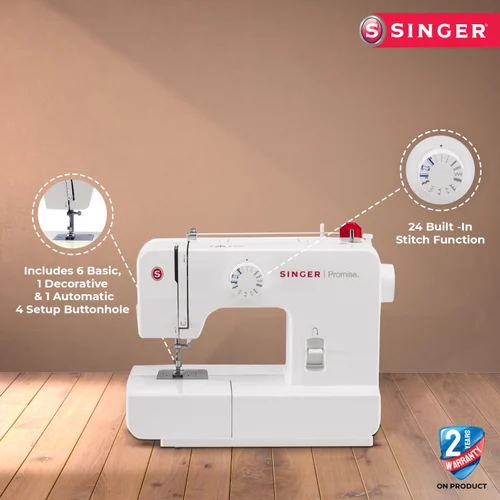 The SINGER® Promise™ 1408 sewing machine offers essential features perfect for beginners and everyday sewing tasks. With 8 built-in stitches, including basic and decorative options, plus a 4-step automatic buttonhole, this compact machine makes sewing easy and efficient. Its durable metal frame ensures stability and long-lasting performance.