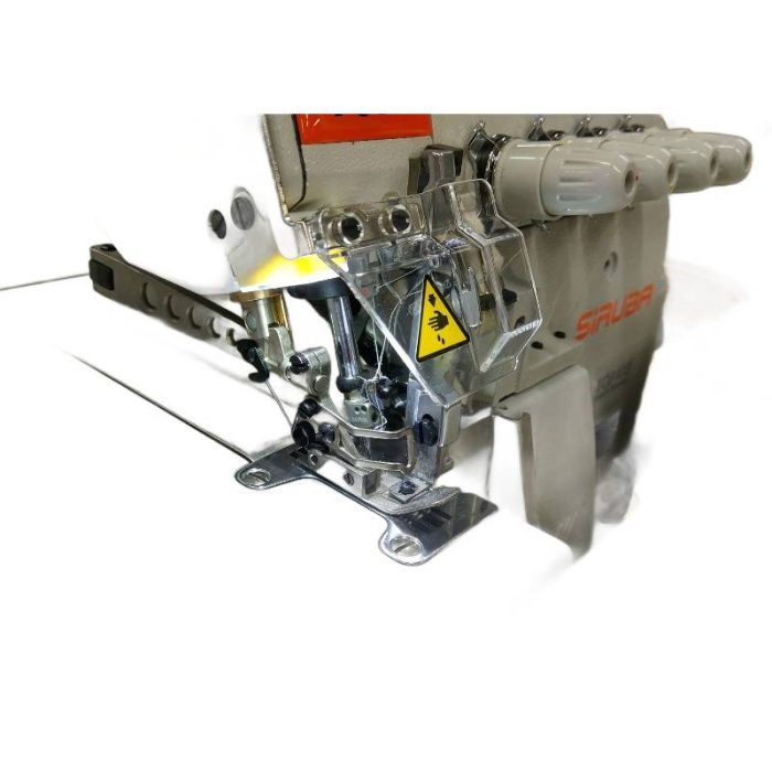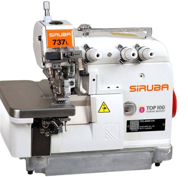The Siruba 737L-504M2-15/DKLU is a 3-thread merrow-type overlock machine designed for decorative hemming of light and medium-weight fabrics. It features a modern thread guiding system that ensures smooth and stable operation at high speeds up to 6,500 stitches per minute. All thread-contact elements are made from anti-static materials to improve stitch quality and reduce thread tension issues.