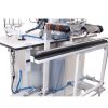 This high-performance automatic hemming machine is designed for finishing the bottoms of T-shirts and polo shirts using ladder stitch. It automatically positions the garment, controls edge folding, trims excess fabric, and completes the hemming process without operator input, ensuring uniform quality and high productivity.
