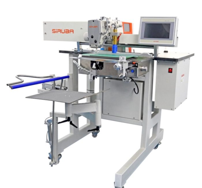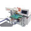 The equipment includes a feeding table for arranging sewing materials and an automatic stacker for receiving sewn items.