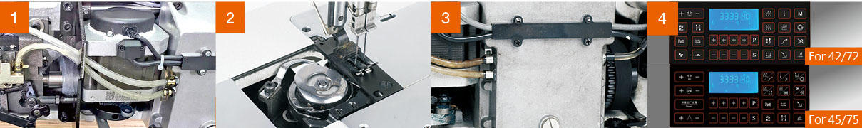 The user interface centers on a multi-functional, intuitive control panel that simplifies operation with direct key functions. This panel is integrated into a back-mounted control box that streamlines installation and minimizes floor space usage. The ergonomic layout enables fast adjustments of stitch parameters and machine settings, improving workflow efficiency.